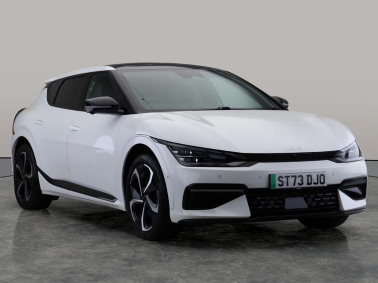Experience the future with this white Kia EV6 GT-Line S. Enjoy the luxury of a panoramic roof and head-up display, plus the comfort of heated seats, heated steering wheel, and electric driver memory seat. Effortless journeys await with park assist, reversing camera, blind spot assist, lane departure warning, and adaptive cruise control. LED headlights and sat nav ensure every drive is bright and connected. A stunning electric hatch, ready for your next adventure. 2 services recorded, last serviced on 06/03/2025 at 48, 050 miles. MOT to 21/09/2026. Visit our website for service history, online valuation, full vehicle specification plus multiple images. This vehicle is VAT qualifying. Any feature/option specified here is from 3rd party data. We cannot guarantee the accuracy of any specification supplied by a 3rd party. We recommend that you physically check the specification of the vehicle on site prior to purchase. This information does not form part of the buying contract. Terms & Conditions apply. We have over 2, 000 cars available from our 10 national branches, check our website to see all our stock. Our Trustpilot rating is 4.4/5 with over 9, 000 reviews.
