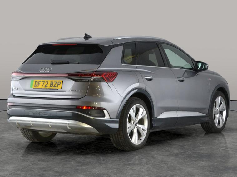 Experience the future with this Audi Q4 E-tron SUV in stylish grey. Enjoy premium comforts like heated S line embossed sport seats and advanced technology including MMI Navigation Plus, Audi Virtual Cockpit, and seamless Apple CarPlay. Stay connected with built-in WiFi and Bluetooth audio streaming. Safety is paramount with lane departure warning and traffic sign recognition. Adapt your drive with multiple driving modes and relax with adaptive cruise control. Enjoy the brilliance of LED headlights and precise navigation on every journey. 1 service recorded, last serviced on 08/02/2026 at 43, 118 miles. MOT to 24/01/2027. Visit our website for service history, online valuation, full vehicle specification plus multiple images. Certain features listed may be available via subscription packages at extra costs, please consult with Audi for details. This vehicle is VAT qualifying. Any feature/option specified here is from 3rd party data. We cannot guarantee the accuracy of any specification supplied by a 3rd party. We recommend that you physically check the specification of the vehicle on site prior to purchase. This information does not form part of the buying contract. Terms & Conditions apply. We have over 2, 000 cars available from our 10 national branches, check our website to see all our stock. Our Trustpilot rating is 4.4/5 with over 9, 000 reviews.
