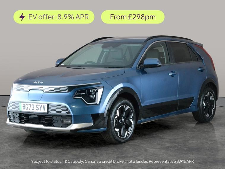 Experience the Kia Niro electric SUV in stunning blue, featuring heated seats and steering wheel, plus a panoramic LED lighting setup for a modern touch. Stay connected with Apple CarPlay, enjoy seamless navigation, and drive with confidence using adaptive cruise control, blind spot assist, and a lane departure warning system. The reversing camera and regenerative braking paddles add practicality and fun. Ideal for those who want style, technology, and electric efficiency in one smart package. 1 service recorded, last serviced on 05/02/2026 at 10, 391 miles. MOT to 04/01/2027. Visit our website for service history, online valuation, full vehicle specification plus multiple images. This vehicle is VAT qualifying. Any feature/option specified here is from 3rd party data. We cannot guarantee the accuracy of any specification supplied by a 3rd party. We recommend that you physically check the specification of the vehicle on site prior to purchase. This information does not form part of the buying contract. Terms & Conditions apply. We have over 2, 000 cars available from our 10 national branches, check our website to see all our stock. Our Trustpilot rating is 4.4/5 with over 9, 000 reviews.