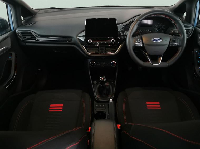Stand out in this vibrant blue Ford Fiesta ST-Line, featuring stylish black-red cloth seats with eye-catching red stitching and shimmering 17in alloy wheels. Enjoy cutting-edge tech with Ford SYNC3, sat nav, active lane assist, LED headlights, traffic sign recognition, and wifi on board. Stay entertained with Bluetooth audio streaming and stay secure with keyless start and Ford MyKey. Cruise control and selectable driving modes complete a sporty and comfortable driving experience. 3 services recorded, last serviced on 13/11/2026 at 22, 025 miles. MOT to 09/01/2027. Visit our website for service history, online valuation, full vehicle specification plus multiple images. This vehicle is VAT qualifying. Any feature/option specified here is from 3rd party data. We cannot guarantee the accuracy of any specification supplied by a 3rd party. We recommend that you physically check the specification of the vehicle on site prior to purchase. This information does not form part of the buying contract. Terms & Conditions apply. We have over 2, 000 cars available from our 10 national branches, check our website to see all our stock. Our Trustpilot rating is 4.4/5 with over 9, 000 reviews.
