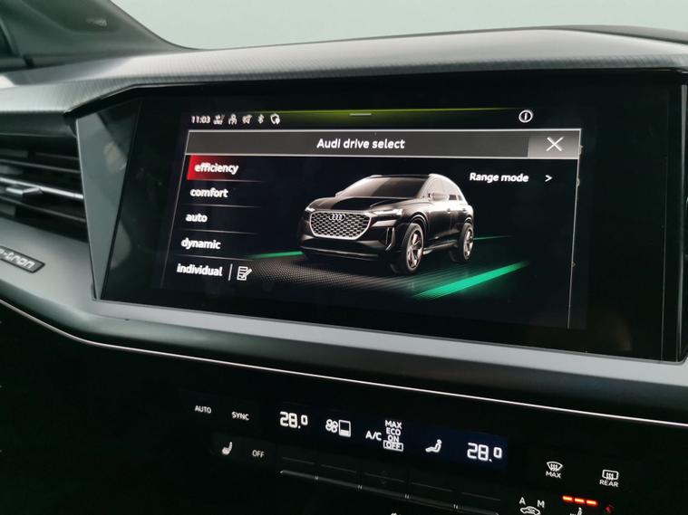 Experience the future with this stylish silver Audi Q4 E-tron 40 Sport SUV. Enjoy seamless connectivity with MMI Navigation Plus, Apple CarPlay, Bluetooth audio streaming, and in-car Wifi. Optional heated leather seats add a touch of luxury, while LED headlights, adaptive cruise control, active lane assist, and a reversing camera ensure every drive is safe and comfortable. Effortlessly navigate every journey with driving modes and advanced lane departure warning. A refined electric SUV, perfect for modern living. 2 services recorded, last serviced on 05/02/2026 at 81, 346 miles. Visit our website for service history, online valuation, full vehicle specification plus multiple images. Certain features listed may be available via subscription packages at extra costs, please consult with Audi for details. This vehicle is VAT qualifying. Any feature/option specified here is from 3rd party data. We cannot guarantee the accuracy of any specification supplied by a 3rd party. We recommend that you physically check the specification of the vehicle on site prior to purchase. This information does not form part of the buying contract. Terms & Conditions apply. We have over 2, 000 cars available from our 10 national branches, check our website to see all our stock. Our Trustpilot rating is 4.4/5 with over 9, 000 reviews.