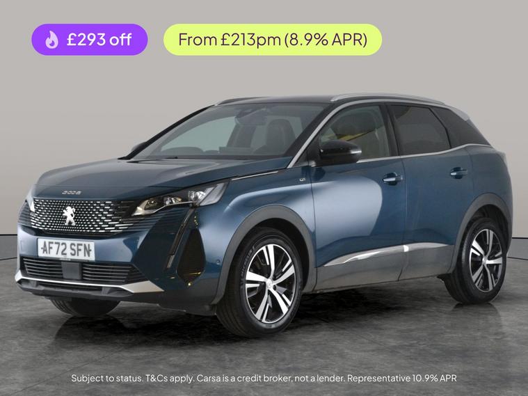 Experience driving in style with this Peugeot 3008 GT. Enjoy top features like Adaptive Cruise Control, stunning LED headlights, a crystal-clear Reversing Camera, and built-in Sat Nav with Wifi connectivity. Stay safe with Blind Spot Assist and Lane Departure Warning, while Traffic Sign Recognition keeps you informed. Apple CarPlay, Bluetooth audio streaming, and Dual Zone Digital Climate Control add comfort and convenience, making every journey a pleasure. Stylish, smart and packed with innovative tech, the 3008 GT is ready for your next adventure. 3 services recorded, last serviced on 27/08/2025 at 29, 614 miles. MOT to 04/09/2026. Visit our website for service history, online valuation, full vehicle specification plus multiple images. This vehicle is VAT qualifying. Any feature/option specified here is from 3rd party data. We cannot guarantee the accuracy of any specification supplied by a 3rd party. We recommend that you physically check the specification of the vehicle on site prior to purchase. This information does not form part of the buying contract. Terms & Conditions apply. We have over 2, 000 cars available from our 10 national branches, check our website to see all our stock. Our Trustpilot rating is 4.4/5 with over 9, 000 reviews.
