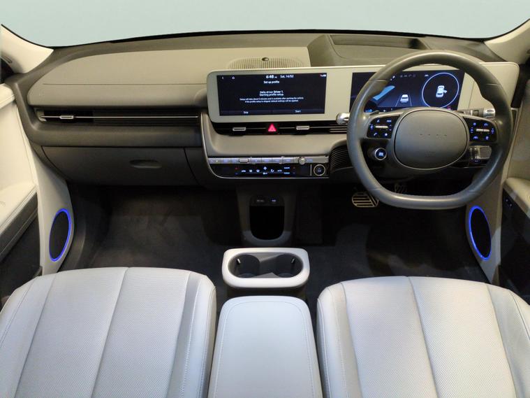 Experience the future with this Hyundai Ioniq 5 Hatchback in sleek black, featuring Moonlight Grey cloth with leather facings for added luxury. Enjoy a superior drive with its Head-Up Display, immersive BOSE sound system, heated seats and steering wheel, and a helpful reversing camera. Stay connected with Apple CarPlay, navigate with ease using built-in Sat Nav, and drive confidently with Blind Spot Assist and Lane Departure Warning. The advanced keyless entry and regenerative braking paddles add further convenience to every journey. 3 services recorded, last serviced on 13/02/2026 at 34, 630 miles. MOT to 29/09/2026. Visit our website for service history, online valuation, full vehicle specification plus multiple images. This vehicle is VAT qualifying. Any feature/option specified here is from 3rd party data. We cannot guarantee the accuracy of any specification supplied by a 3rd party. We recommend that you physically check the specification of the vehicle on site prior to purchase. This information does not form part of the buying contract. Terms & Conditions apply. We have over 2, 000 cars available from our 10 national branches, check our website to see all our stock. Our Trustpilot rating is 4.4/5 with over 9, 000 reviews.