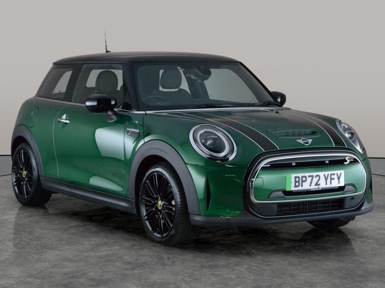 Stand out in this striking green Mini Electric Hatch Cooper SE. With sleek black bonnet stripes and matching roof and mirror caps, its a real head-turner. Enjoy the luxury of heated part-leather seats, smart keyless entry, and a reversing camera. The 17in Tentacle Spoke alloy wheels complete its sporty look. Stay connected with Apple CarPlay and premium navigation, while LED headlights and cruise control make every drive a pleasure. Experience eco-friendly fun with this electric icon. 2 services recorded, last serviced on 02/01/2026 at 9, 737 miles. MOT to 15/01/2027. Visit our website for service history, online valuation, full vehicle specification plus multiple images. This vehicle is VAT qualifying. Any feature/option specified here is from 3rd party data. We cannot guarantee the accuracy of any specification supplied by a 3rd party. We recommend that you physically check the specification of the vehicle on site prior to purchase. This information does not form part of the buying contract. Terms & Conditions apply. We have over 2, 000 cars available from our 10 national branches, check our website to see all our stock. Our Trustpilot rating is 4.4/5 with over 9, 000 reviews.
