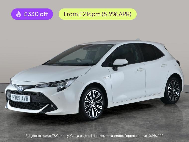 Experience the Toyota Corolla Hybrid, a stylish white hatchback with eye-catching 17in alloy wheels and advanced LED headlights. Relax in comfort with heated and cooled seats, adaptive cruise control, and seamless Apple CarPlay integration. Effortless parking is assured with Park Assist and a reversing camera. Navigate with ease using the built-in Sat Nav, while safety features like Lane Departure Alert provide peace of mind. Enjoy a smooth automatic drive with multiple driving modes and premium Bluetooth audio streaming. 6 services recorded, last serviced on 12/01/2026 at 66, 886 miles. MOT to 05/02/2027. Visit our website for service history, online valuation, full vehicle specification plus multiple images. Any feature/option specified here is from 3rd party data. We cannot guarantee the accuracy of any specification supplied by a 3rd party. We recommend that you physically check the specification of the vehicle on site prior to purchase. This information does not form part of the buying contract. Terms & Conditions apply. We have over 2, 000 cars available from our 10 national branches, check our website to see all our stock. Our Trustpilot rating is 4.4/5 with over 9, 000 reviews.