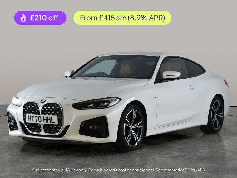 Experience sporty sophistication with this stunning white BMW 4 Series M Sport Coupe. Enjoy the added style of the M Rear Spoiler and relax in luxurious Vernasca leather heated seats. Equipped with LED headlights, Apple CarPlay, advanced Park Assist, and a clear reversing camera, driving is effortless. Stay safe with Active Lane Assist and Lane Departure Warning System, while BMW Live Cockpit Professional and Connected Package Professional keep you seamlessly in control. This car unites performance and technology for a truly impressive drive. 1 service recorded, last serviced on 17/02/2026 at 18, 663 miles. MOT to 19/02/2027. Visit our website for service history, online valuation, full vehicle specification plus multiple images. Certain features listed may be available via subscription packages at extra costs, please consult with BMW for details. This vehicle is VAT qualifying. Any feature/option specified here is from 3rd party data. We cannot guarantee the accuracy of any specification supplied by a 3rd party. We recommend that you physically check the specification of the vehicle on site prior to purchase. This information does not form part of the buying contract. Terms & Conditions apply. We have over 2, 000 cars available from our 10 national branches, check our website to see all our stock. Our Trustpilot rating is 4.4/5 with over 9, 000 reviews.