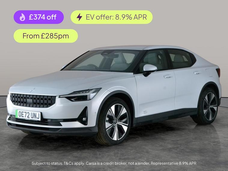 Experience the sleek silver Polestar 2an all-electric fastback with impressive range. Enjoy seamless journeys with Apple CarPlay, adaptive LED headlights, and keyless entry. Parking is effortless thanks to park assist and a reversing camera. Stay comfortable with heated seats and dual zone climate control, while advanced safety comes as standard with a lane departure warning system and cruise control. Drive in style and convenience with Bluetooth connectivity and keyless start, plus a charging lead to keep you powered up. 2 services recorded, last serviced on 17/02/2026 at 24, 922 miles. MOT to 05/01/2027. Visit our website for service history, online valuation, full vehicle specification plus multiple images. This vehicle is VAT qualifying. Any feature/option specified here is from 3rd party data. We cannot guarantee the accuracy of any specification supplied by a 3rd party. We recommend that you physically check the specification of the vehicle on site prior to purchase. This information does not form part of the buying contract. Terms & Conditions apply. We have over 2, 000 cars available from our 10 national branches, check our website to see all our stock. Our Trustpilot rating is 4.4/5 with over 9, 000 reviews.