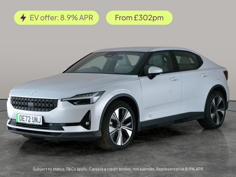 Experience the sleek silver Polestar 2an all-electric fastback with impressive range. Enjoy seamless journeys with Apple CarPlay, adaptive LED headlights, and keyless entry. Parking is effortless thanks to park assist and a reversing camera. Stay comfortable with heated seats and dual zone climate control, while advanced safety comes as standard with a lane departure warning system and cruise control. Drive in style and convenience with Bluetooth connectivity and keyless start, plus a charging lead to keep you powered up. 2 services recorded, last serviced on 17/02/2026 at 24, 922 miles. MOT to 05/01/2027. Visit our website for service history, online valuation, full vehicle specification plus multiple images. This vehicle is VAT qualifying. Any feature/option specified here is from 3rd party data. We cannot guarantee the accuracy of any specification supplied by a 3rd party. We recommend that you physically check the specification of the vehicle on site prior to purchase. This information does not form part of the buying contract. Terms & Conditions apply. We have over 2, 000 cars available from our 10 national branches, check our website to see all our stock. Our Trustpilot rating is 4.4/5 with over 9, 000 reviews.