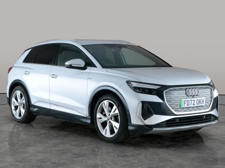Experience the future of driving with this Audi Q4 E-tron S Line, finished in striking white. Enjoy supreme comfort thanks to the optional Comfort and Sound Package with an upgraded sound system and heated seats. The advanced MMI Navigation Plus and Sat Nav ensure youre always on track, while LED headlights brighten the road ahead. Stay in control with lane departure warning, cruise control, and driving modes. With climate control, Bluetooth, and smart traffic sign recognition, every journey is a breeze. 1 service recorded, last serviced on 22/01/2025 at 19, 028 miles. MOT to 22/01/2027. Visit our website for service history, online valuation, full vehicle specification plus multiple images. Certain features listed may be available via subscription packages at extra costs, please consult with Audi for details. This vehicle is VAT qualifying. Any feature/option specified here is from 3rd party data. We cannot guarantee the accuracy of any specification supplied by a 3rd party. We recommend that you physically check the specification of the vehicle on site prior to purchase. This information does not form part of the buying contract. Terms & Conditions apply. We have over 2, 000 cars available from our 10 national branches, check our website to see all our stock. Our Trustpilot rating is 4.4/5 with over 9, 000 reviews.