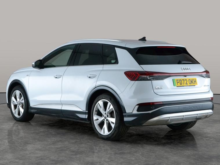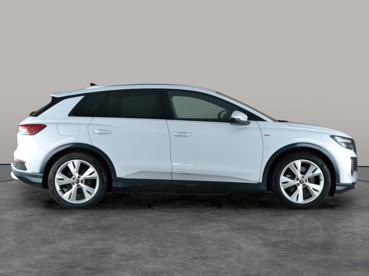 Experience the future of driving with this Audi Q4 E-tron S Line, finished in striking white. Enjoy supreme comfort thanks to the optional Comfort and Sound Package with an upgraded sound system and heated seats. The advanced MMI Navigation Plus and Sat Nav ensure youre always on track, while LED headlights brighten the road ahead. Stay in control with lane departure warning, cruise control, and driving modes. With climate control, Bluetooth, and smart traffic sign recognition, every journey is a breeze. 1 service recorded, last serviced on 22/01/2025 at 19, 028 miles. MOT to 22/01/2027. Visit our website for service history, online valuation, full vehicle specification plus multiple images. Certain features listed may be available via subscription packages at extra costs, please consult with Audi for details. This vehicle is VAT qualifying. Any feature/option specified here is from 3rd party data. We cannot guarantee the accuracy of any specification supplied by a 3rd party. We recommend that you physically check the specification of the vehicle on site prior to purchase. This information does not form part of the buying contract. Terms & Conditions apply. We have over 2, 000 cars available from our 10 national branches, check our website to see all our stock. Our Trustpilot rating is 4.4/5 with over 9, 000 reviews.