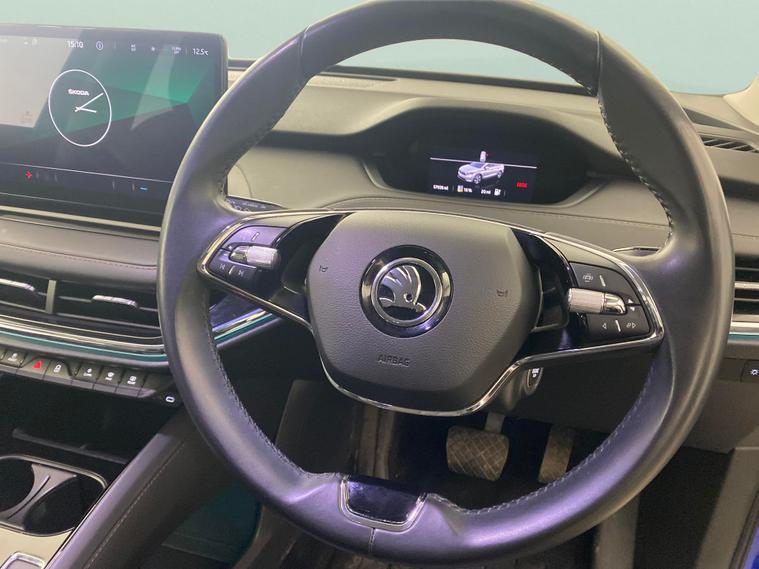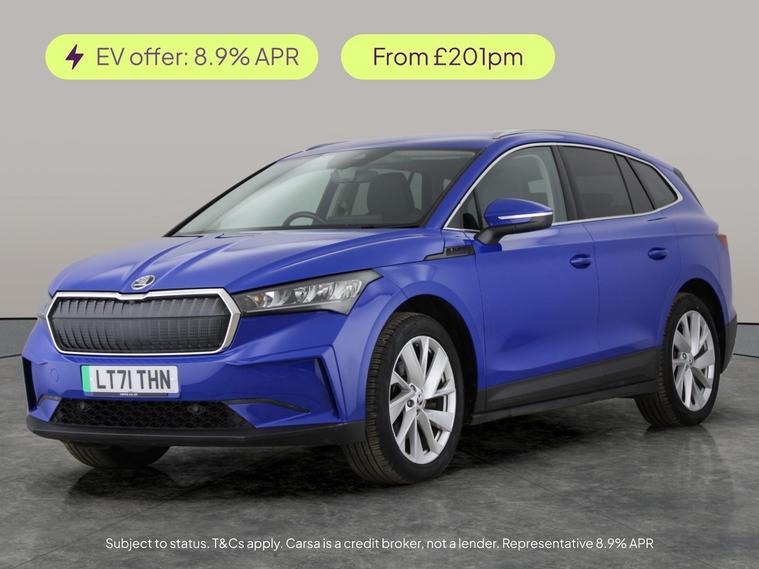 Experience modern driving in this blue Skoda Enyaq SUV, enhanced with the luxurious Interior Package Suite, plus added ease from the Parking, Convenience, and Climate Packs. Cruise smoothly in electric comfort with LED headlights, built-in Sat Nav, Apple CarPlay, SmartLink, and WiFi connectivity. Enjoy effortless journeys with keyless start, climate control, and cruise control. Ideal for those who value style, innovation, and practicality all in one impeccable package. 2 services recorded, last serviced on 06/10/2025 at 55, 467 miles. MOT to 06/10/2026. Visit our website for service history, online valuation, full vehicle specification plus multiple images. This vehicle is VAT qualifying. Any feature/option specified here is from 3rd party data. We cannot guarantee the accuracy of any specification supplied by a 3rd party. We recommend that you physically check the specification of the vehicle on site prior to purchase. This information does not form part of the buying contract. Terms & Conditions apply. We have over 2, 000 cars available from our 10 national branches, check our website to see all our stock. Our Trustpilot rating is 4.4/5 with over 9, 000 reviews.