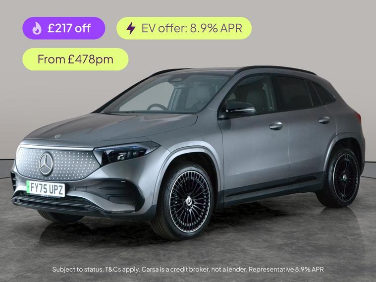 Step into luxury with this stylish grey Mercedes-Benz EQA SUV. Enjoy modern touches like Alcantara heated seats, keyless entry, and a full Mirror Package for added convenience. Navigate effortlessly using built-in Sat Nav and Apple CarPlay. Stay safe with Blind Spot Assist, active lane keeping, and lane departure warning. The Night Package and LED headlights ensure you look sharp day and night, while the Comfort Pack and reversing camera add that extra touch of sophistication and ease. Experience electric driving at its finest. MOT to 20/10/2028. Visit our website for service history, online valuation, full vehicle specification plus multiple images. This vehicle is VAT qualifying. Any feature/option specified here is from 3rd party data. We cannot guarantee the accuracy of any specification supplied by a 3rd party. We recommend that you physically check the specification of the vehicle on site prior to purchase. This information does not form part of the buying contract. Terms & Conditions apply. We have over 2, 000 cars available from our 10 national branches, check our website to see all our stock. Our Trustpilot rating is 4.4/5 with over 9, 000 reviews.
