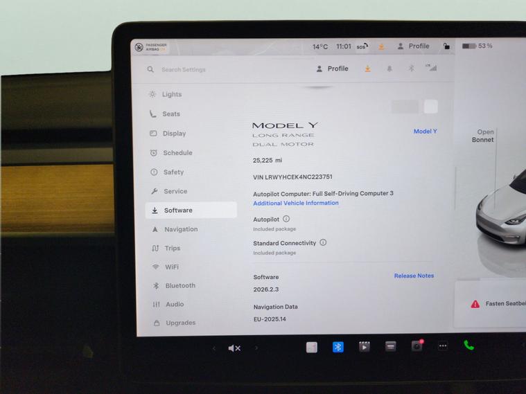 Experience the future of driving with this superb Tesla Model Y. Enjoy effortless entry with keyless access, surround yourself with luxury thanks to heated leather seats and a heated steering wheel, and stay seamlessly connected via onboard WiFi and Bluetooth audio. LED headlights light your way while cutting-edge features like Blind Spot Assist, Traffic Sign Recognition, and a reversing camera make every journey safer. The integrated sat nav and digital display keep you on track and informed every mile. 1 service recorded, last serviced on 21/02/2026 at 25, 225 miles. MOT to 23/02/2027. Visit our website for service history, online valuation, full vehicle specification plus multiple images. This vehicle is VAT qualifying. Any feature/option specified here is from 3rd party data. We cannot guarantee the accuracy of any specification supplied by a 3rd party. We recommend that you physically check the specification of the vehicle on site prior to purchase. This information does not form part of the buying contract. Terms & Conditions apply. We have over 2, 000 cars available from our 10 national branches, check our website to see all our stock. Our Trustpilot rating is 4.4/5 with over 9, 000 reviews.