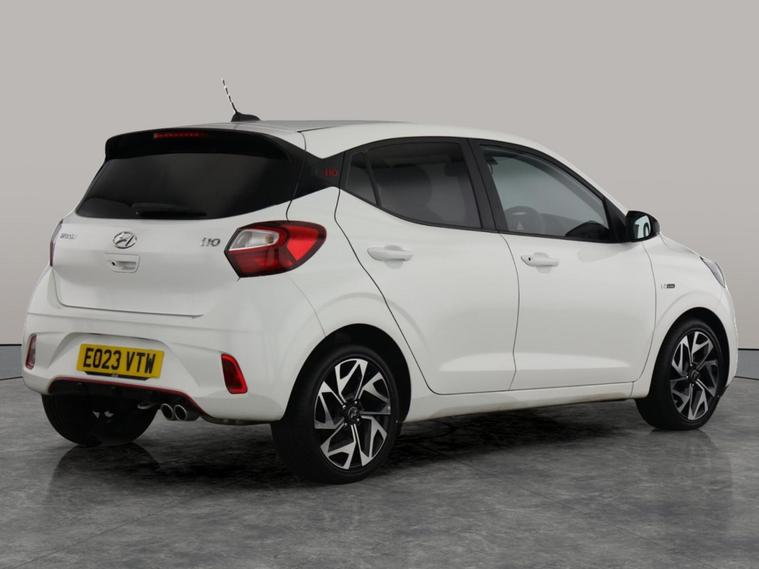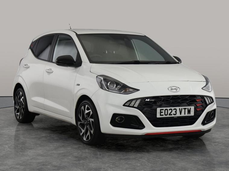 Discover the stylish Hyundai i10 N Line in striking white, perfect for city driving with its nimble petrol manual engine. Enjoy stress-free parking with a reversing camera and added peace of mind from the lane departure warning system. Cruise control makes motorway journeys a breeze, while climate control and air conditioning ensure comfort on every trip. Stay connected on the go with integrated Bluetooth. A fun, practical hatchback that stands out for all the right reasons! 2 services recorded, last serviced on 11/11/2025 at 16, 129 miles. MOT to 09/11/2026. Visit our website for service history, online valuation, full vehicle specification plus multiple images. Any feature/option specified here is from 3rd party data. We cannot guarantee the accuracy of any specification supplied by a 3rd party. We recommend that you physically check the specification of the vehicle on site prior to purchase. This information does not form part of the buying contract. Terms & Conditions apply. We have over 2, 000 cars available from our 10 national branches, check our website to see all our stock. Our Trustpilot rating is 4.4/5 with over 9, 000 reviews.