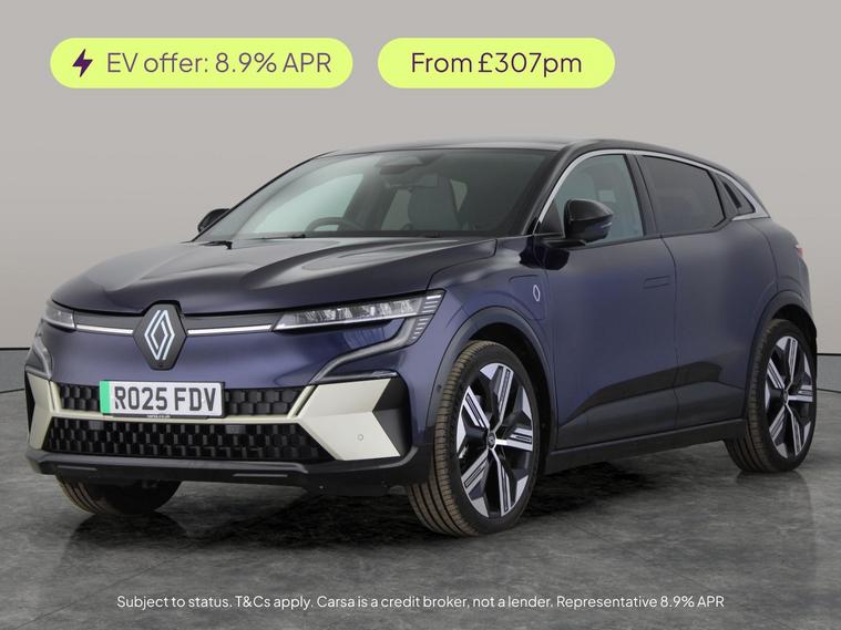 Discover the Renault Megane E-tech iconic in striking blue, offering the perfect blend of style and innovation. Enjoy upgraded Harman/Kardon sound, luxurious heated seats and steering wheel, and a driver memory seat for ultimate comfort. Stay connected with Apple CarPlay, built-in WiFi, and Sat Nav. Advanced safety features include Adaptive Cruise Control, Blind Spot Assist, Lane Departure Warning, and Park Assist. Experience effortless entry with keyless access and drive confidently with bright LED headlights. This electric automatic hatchback is ready to impress. MOT to 08/04/2028. Visit our website for service history, online valuation, full vehicle specification plus multiple images. This vehicle is VAT qualifying. Any feature/option specified here is from 3rd party data. We cannot guarantee the accuracy of any specification supplied by a 3rd party. We recommend that you physically check the specification of the vehicle on site prior to purchase. This information does not form part of the buying contract. Terms & Conditions apply. We have over 2, 000 cars available from our 10 national branches, check our website to see all our stock. Our Trustpilot rating is 4.4/5 with over 9, 000 reviews.