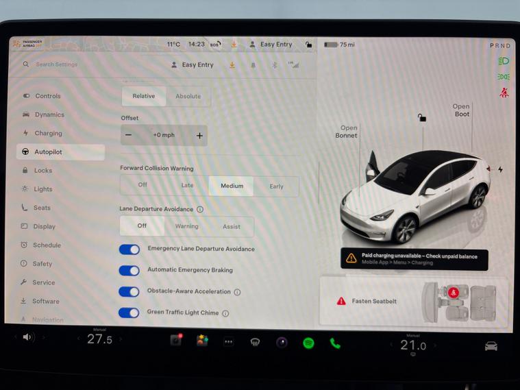 Experience the future of driving with this Tesla Model Y in white. Enjoy luxury with a panoramic roof, heated leather seats, and a heated steering wheel for comfort in all seasons. Navigate easily with the built-in sat nav and stay connected via WiFi and Bluetooth audio streaming. Advanced features include keyless entry, reversing camera, blind spot assist and lane departure warning, plus powerful LED headlights. All-electric and automatic, its the perfect modern SUV. 1 service recorded, last serviced on 28/02/2026 at 25, 130 miles. MOT to 23/01/2027. Visit our website for service history, online valuation, full vehicle specification plus multiple images. This vehicle is VAT qualifying. Any feature/option specified here is from 3rd party data. We cannot guarantee the accuracy of any specification supplied by a 3rd party. We recommend that you physically check the specification of the vehicle on site prior to purchase. This information does not form part of the buying contract. Terms & Conditions apply. We have over 2, 000 cars available from our 10 national branches, check our website to see all our stock. Our Trustpilot rating is 4.4/5 with over 9, 000 reviews.