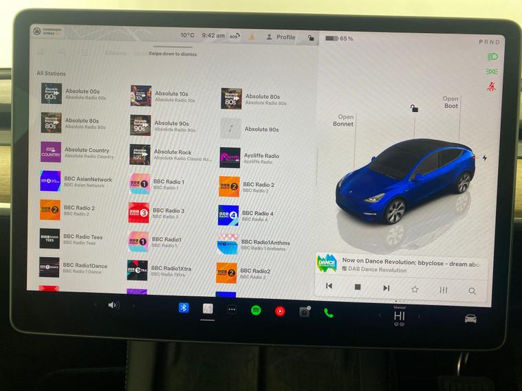 Experience the thrill of electric driving with this blue Tesla Model Y. Enjoy premium comfort with heated front and rear seats, a heated steering wheel, and dual zone climate control. Stay connected with built-in WiFi, Sat Nav and Bluetooth, while keyless entry and a reversing camera make every journey effortless. LED headlights add style and visibility, and advanced safety comes with blind spot assist and traffic sign recognition. This Model Y is perfect for a high-tech, comfortable ride. 1 service recorded, last serviced on 12/11/2025 at 41, 036 miles. MOT to 28/11/2026. Visit our website for service history, online valuation, full vehicle specification plus multiple images. This vehicle is VAT qualifying. Any feature/option specified here is from 3rd party data. We cannot guarantee the accuracy of any specification supplied by a 3rd party. We recommend that you physically check the specification of the vehicle on site prior to purchase. This information does not form part of the buying contract. Terms & Conditions apply. We have over 2, 000 cars available from our 10 national branches, check our website to see all our stock. Our Trustpilot rating is 4.4/5 with over 9, 000 reviews.