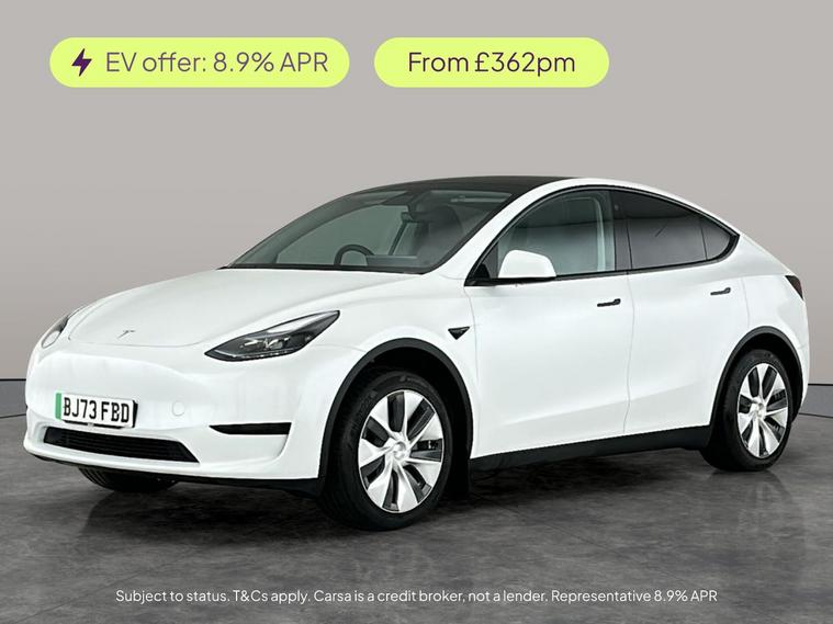 Experience electric driving at its best with the Tesla Model Y. Enjoy luxury features like heated seats front and rear, a heated steering wheel, and advanced climate control for comfort all year round. Stay safe with blind spot assist and traffic sign recognition, while LED headlights and a reversing camera offer enhanced visibility and confidence. Keyless entry and sat nav add convenience, and Bluetooth keeps you effortlessly connected on every journey. This white SUV blends innovation and style in one impressive package. MOT to 27/09/2026. Visit our website for service history, online valuation, full vehicle specification plus multiple images. This vehicle is VAT qualifying. Any feature/option specified here is from 3rd party data. We cannot guarantee the accuracy of any specification supplied by a 3rd party. We recommend that you physically check the specification of the vehicle on site prior to purchase. This information does not form part of the buying contract. Terms & Conditions apply. We have over 2, 000 cars available from our 10 national branches, check our website to see all our stock. Our Trustpilot rating is 4.4/5 with over 9, 000 reviews.