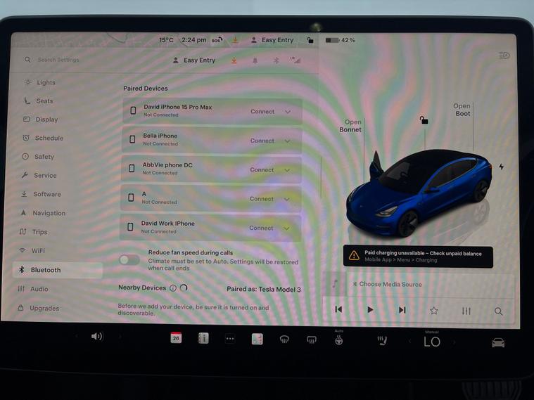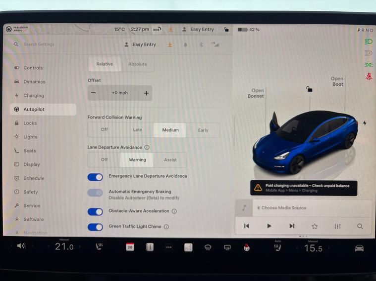 Experience the Tesla Model 3 in striking blue, boasting a luxurious panoramic roof and plush leather seats with heating for supreme comfort. Stay safe and stress-free with adaptive cruise control, active lane assist, park assist, and blind spot assist. Enjoy seamless access with keyless entry, a heated steering wheel, and integrated garage door control. Navigate easily with built-in sat nav, stay connected via WiFi, and drive confidently with LED headlights and a reversing camera. Discover electric performance with premium features. 1 service recorded, last serviced on 26/02/2026 at 42, 182 miles. MOT to 14/02/2027. Visit our website for service history, online valuation, full vehicle specification plus multiple images. This vehicle is VAT qualifying. Any feature/option specified here is from 3rd party data. We cannot guarantee the accuracy of any specification supplied by a 3rd party. We recommend that you physically check the specification of the vehicle on site prior to purchase. This information does not form part of the buying contract. Terms & Conditions apply. We have over 2, 000 cars available from our 10 national branches, check our website to see all our stock. Our Trustpilot rating is 4.4/5 with over 9, 000 reviews.