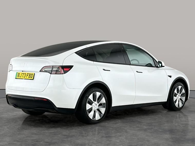 Experience electric driving at its best with the Tesla Model Y. Enjoy luxury features like heated seats front and rear, a heated steering wheel, and advanced climate control for comfort all year round. Stay safe with blind spot assist and traffic sign recognition, while LED headlights and a reversing camera offer enhanced visibility and confidence. Keyless entry and sat nav add convenience, and Bluetooth keeps you effortlessly connected on every journey. This white SUV blends innovation and style in one impressive package. MOT to 27/09/2026. Visit our website for service history, online valuation, full vehicle specification plus multiple images. This vehicle is VAT qualifying. Any feature/option specified here is from 3rd party data. We cannot guarantee the accuracy of any specification supplied by a 3rd party. We recommend that you physically check the specification of the vehicle on site prior to purchase. This information does not form part of the buying contract. Terms & Conditions apply. We have over 2, 000 cars available from our 10 national branches, check our website to see all our stock. Our Trustpilot rating is 4.4/5 with over 9, 000 reviews.