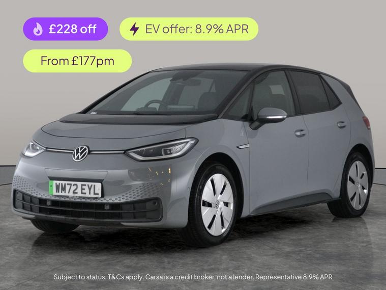Experience the future of driving with this sleek grey Volkswagen ID.3. Enjoy the airy interior thanks to the panoramic roof and sunroof, while Adaptive Cruise Control and Front and Rear Parking Sensors make every journey effortless. Stay connected with Apple CarPlay and Bluetooth, and take advantage of the Assistance and Comfort Packs for ultimate convenience. Keyless Entry, Dual Zone Digital Climate Control, and half leather seats add a premium touch to this outstanding electric hatchback. 1 service recorded, last serviced on 18/12/2024 at 16, 714 miles. MOT to 16/01/2027. Visit our website for service history, online valuation, full vehicle specification plus multiple images. This vehicle is VAT qualifying. Any feature/option specified here is from 3rd party data. We cannot guarantee the accuracy of any specification supplied by a 3rd party. We recommend that you physically check the specification of the vehicle on site prior to purchase. This information does not form part of the buying contract. Terms & Conditions apply. We have over 2, 000 cars available from our 10 national branches, check our website to see all our stock. Our Trustpilot rating is 4.4/5 with over 9, 000 reviews.
