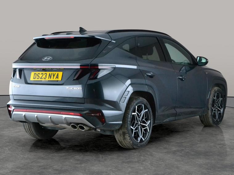 Step into style with this grey Hyundai Tucson N Line. Enjoy luxurious Alcantara heated seats, keyless entry, wireless phone charging and seamless Apple CarPlay. Navigate every journey with built-in sat nav, cruise control and multiple driving modes. Feel confident with bright LED headlights, a clear reversing camera and advanced lane departure warning. Stay connected through Bluetooth audio streaming and experience the convenience of a smooth automatic hybrid drive. This is the perfect blend of sophistication, technology and everyday comfort. 3 services recorded, last serviced on 14/02/2026 at 17, 364 miles. MOT to 15/02/2027. Visit our website for service history, online valuation, full vehicle specification plus multiple images. This vehicle is VAT qualifying. Any feature/option specified here is from 3rd party data. We cannot guarantee the accuracy of any specification supplied by a 3rd party. We recommend that you physically check the specification of the vehicle on site prior to purchase. This information does not form part of the buying contract. Terms & Conditions apply. We have over 2, 000 cars available from our 10 national branches, check our website to see all our stock. Our Trustpilot rating is 4.4/5 with over 9, 000 reviews.
