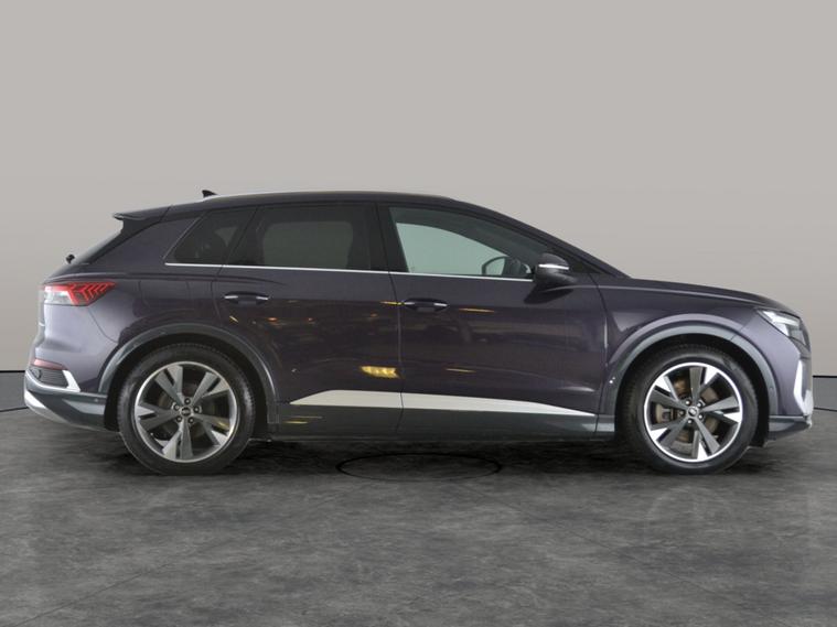 Experience the Audi Q4 E-tron S Line with the fantastic Tech and Comfort & Sound Packages included. Enjoy an upgraded sound system, MMI Navigation Plus, reversing camera, heated half-leather seats, and LED headlights. Stay connected with Apple CarPlay and Bluetooth audio streaming. Benefit from driver aids including active lane assist, lane departure warning, and traffic sign recognition, all styled in a striking purple finish. This electric SUV combines advanced technology with comfort and Audi style, ready for your next journey. 1 service recorded, last serviced on 03/01/2025 at 5, 103 miles. MOT to 09/01/2027. Visit our website for service history, online valuation, full vehicle specification plus multiple images. Certain features listed may be available via subscription packages at extra costs, please consult with Audi for details. This vehicle is VAT qualifying. Any feature/option specified here is from 3rd party data. We cannot guarantee the accuracy of any specification supplied by a 3rd party. We recommend that you physically check the specification of the vehicle on site prior to purchase. This information does not form part of the buying contract. Terms & Conditions apply. We have over 2, 000 cars available from our 10 national branches, check our website to see all our stock. Our Trustpilot rating is 4.4/5 with over 9, 000 reviews.