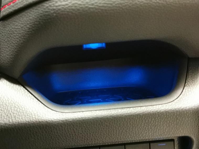 - Blue Ambient Lighting on Front Cup Holders and on Open Tray