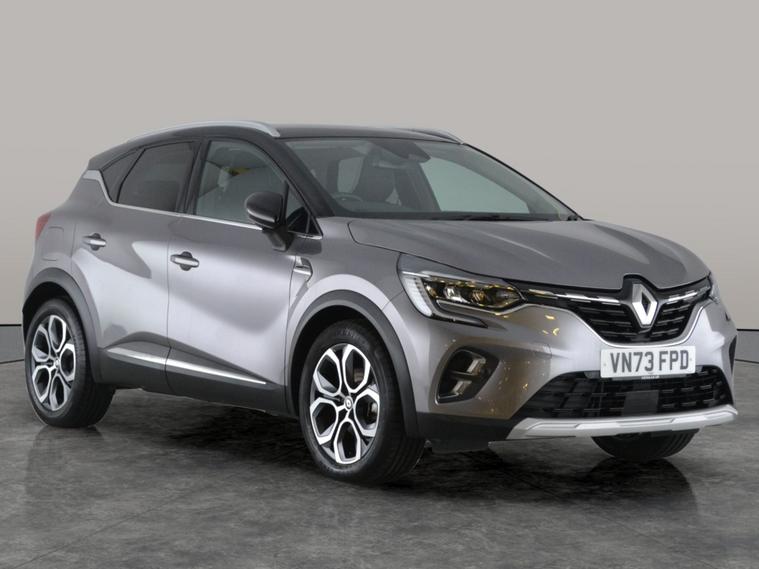 Discover the Renault Captur with stylish synthetic leather-cloth seats in black and grey, complemented by grey stitching. Enjoy Apple CarPlay, a crisp digital dash, Sat Nav, and LED headlights for modern convenience. Stay safe and confident with a reversing camera, lane departure warning, front and rear parking sensors, and traffic sign recognition. Enjoy easy cruising with automatic transmission, driving modes, cruise control, Bluetooth audio, and climate control. All rolling on eye-catching 18in alloy wheels. 3 services recorded, last serviced on 09/03/2026 at 6, 789 miles. MOT to 26/10/2026. Visit our website for service history, online valuation, full vehicle specification plus multiple images. Any feature/option specified here is from 3rd party data. We cannot guarantee the accuracy of any specification supplied by a 3rd party. We recommend that you physically check the specification of the vehicle on site prior to purchase. This information does not form part of the buying contract. Terms & Conditions apply. We have over 2, 000 cars available from our 10 national branches, check our website to see all our stock. Our Trustpilot rating is 4.4/5 with over 9, 000 reviews.