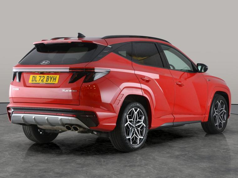 Experience the Hyundai Tucson N Line in stunning red, packed with premium features. Enjoy open-sky drives with the panoramic sunroof and relax in heated seats with a heated steering wheel. Stay effortlessly connected with Apple CarPlay and let the sat nav guide you wherever you go. Seamless keyless entry, LED headlights, a reversing camera, blind spot assist, and active lane assist make every journey safer and easier. All set off by stylish black roof rails and built-in sunblinds for added comfort and practicality. 3 services recorded, last serviced on 16/01/2026 at 18, 073 miles. MOT to 09/02/2027. Visit our website for service history, online valuation, full vehicle specification plus multiple images. This vehicle is VAT qualifying. Any feature/option specified here is from 3rd party data. We cannot guarantee the accuracy of any specification supplied by a 3rd party. We recommend that you physically check the specification of the vehicle on site prior to purchase. This information does not form part of the buying contract. Terms & Conditions apply. We have over 2, 000 cars available from our 10 national branches, check our website to see all our stock. Our Trustpilot rating is 4.4/5 with over 9, 000 reviews.
