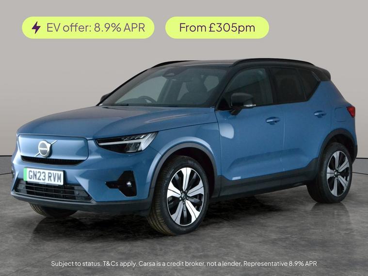 Experience the future of driving with this stylish blue Volvo XC40 Recharge. Optional retractable towbar adds extra versatility, making it perfect for getaways or extra gear. Enjoy a smooth electric drive with advanced features like adaptive cruise control, LED headlights, heated seats and steering wheel, and seamless Apple CarPlay integration. Relax in comfort with keyless entry, climate pack, and 19in diamond cut alloy wheels. Safety is top-notch with blind spot assist, driver assist, park assist, and lane departure warning. Discover effortless urban sophistication in a standout SUV. 2 services recorded, last serviced on 05/09/2025 at 37, 335 miles. MOT to 02/03/2027. Visit our website for service history, online valuation, full vehicle specification plus multiple images. This vehicle is VAT qualifying. Any feature/option specified here is from 3rd party data. We cannot guarantee the accuracy of any specification supplied by a 3rd party. We recommend that you physically check the specification of the vehicle on site prior to purchase. This information does not form part of the buying contract. Terms & Conditions apply. We have over 2, 000 cars available from our 10 national branches, check our website to see all our stock. Our Trustpilot rating is 4.4/5 with over 9, 000 reviews.