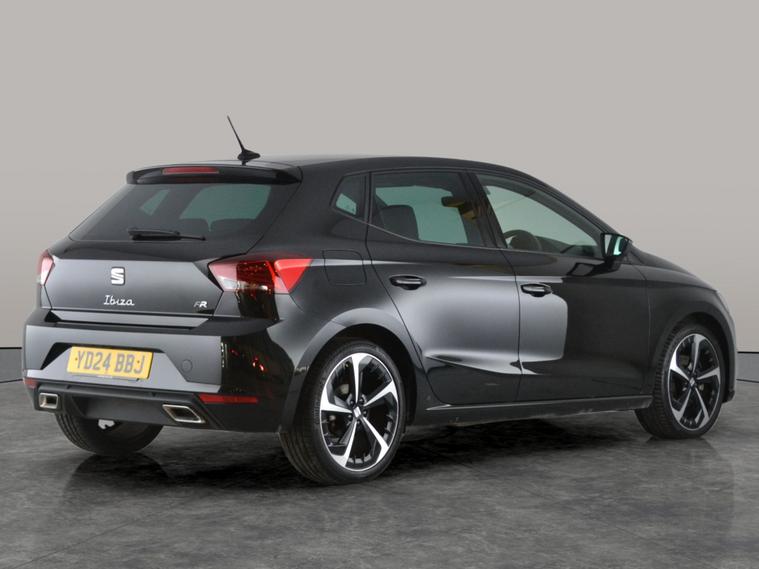 Experience the thrill of driving with this black Seat Ibiza FR Sport Hatchback. Enjoy seamless connectivity with Apple CarPlay, built-in Sat Nav, and Bluetooth audio streaming. Safety is enhanced by the Lane Departure Warning System and handy cruise control. Inside, relax with dual zone digital climate control and half leather seats, all highlighted by a stylish digital display. Shift gears effortlessly with the automatic DSG and paddle shift. Finished with striking 18in alloy wheels, this Ibiza is sporty and smart in every way. 1 service recorded, last serviced on 03/03/2026 at 10, 712 miles. MOT to 12/03/2027. Visit our website for service history, online valuation, full vehicle specification plus multiple images. This vehicle is VAT qualifying. Any feature/option specified here is from 3rd party data. We cannot guarantee the accuracy of any specification supplied by a 3rd party. We recommend that you physically check the specification of the vehicle on site prior to purchase. This information does not form part of the buying contract. Terms & Conditions apply. We have over 2, 000 cars available from our 10 national branches, check our website to see all our stock. Our Trustpilot rating is 4.4/5 with over 9, 000 reviews.