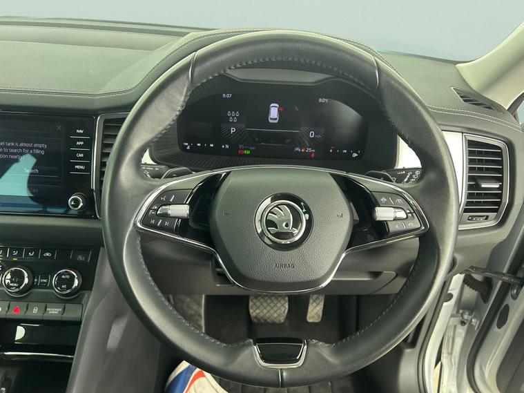 Discover the Skoda Kodiaq, a sleek silver SUV designed for both comfort and practicality. Enjoy effortless entry with keyless access and easy parking thanks to the reversing camera. Stay seamlessly connected through Apple CarPlay, SmartLink and Bluetooth, while satellite navigation helps you find your way with ease. The automatic transmission with paddle shift adds a sporty edge, and air conditioning ensures a comfortable journey for all seven passengers. Perfect for family adventures and everyday driving alike. MOT to 29/12/2026. Visit our website for service history, online valuation, full vehicle specification plus multiple images. This vehicle is VAT qualifying. Any feature/option specified here is from 3rd party data. We cannot guarantee the accuracy of any specification supplied by a 3rd party. We recommend that you physically check the specification of the vehicle on site prior to purchase. This information does not form part of the buying contract. Terms & Conditions apply. We have over 2, 000 cars available from our 10 national branches, check our website to see all our stock. Our Trustpilot rating is 4.4/5 with over 9, 000 reviews.
