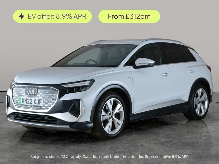 Experience modern electric driving with this stylish white Audi Q4 E-tron S line. Standout features include sleek LED headlights, MMI Navigation Plus with Sat Nav, and seamless Apple CarPlay connectivity. Enjoy premium sound, heated S-Line sport front seats, and onboard WiFi for comfort and entertainment on every journey. Lane Departure Warning, digital driver display, and versatile driving modes add safety and convenience, making every drive exceptional. Discover the future of motoring in this impressive electric SUV. 2 services recorded, last serviced on 14/05/2025 at 31, 540 miles. MOT to 27/03/2026. Visit our website for service history, online valuation, full vehicle specification plus multiple images. Certain features listed may be available via subscription packages at extra costs, please consult with Audi for details. This vehicle is VAT qualifying. Any feature/option specified here is from 3rd party data. We cannot guarantee the accuracy of any specification supplied by a 3rd party. We recommend that you physically check the specification of the vehicle on site prior to purchase. This information does not form part of the buying contract. Terms & Conditions apply. We have over 2, 000 cars available from our 10 national branches, check our website to see all our stock. Our Trustpilot rating is 4.4/5 with over 9, 000 reviews.