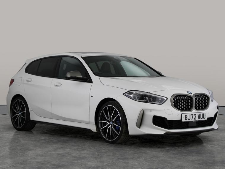 Discover the thrill of the BMW 1 Series M135i, finished in sleek white with stunning 19in M Double-Spoke bi-colour wheels. Enjoy open-air drives with the panoramic roof and sunroof, immersive audio from the Harman/Kardon sound system, and enhanced convenience with Park Assist and a reversing camera. Stay connected with the wireless charger and Technology Pack, while Dakota leather heated seats and a heated steering wheel keep you comfortable. LED headlights and rear privacy glass complete this dynamic hatchback. 3 services recorded, last serviced on 25/03/2026 at 29, 664 miles. MOT to 11/11/2026. Visit our website for service history, online valuation, full vehicle specification plus multiple images. Certain features listed may be available via subscription packages at extra costs, please consult with BMW for details. This vehicle is VAT qualifying. Any feature/option specified here is from 3rd party data. We cannot guarantee the accuracy of any specification supplied by a 3rd party. We recommend that you physically check the specification of the vehicle on site prior to purchase. This information does not form part of the buying contract. Terms & Conditions apply. We have over 2, 000 cars available from our 10 national branches, check our website to see all our stock. Our Trustpilot rating is 4.4/5 with over 9, 000 reviews.
