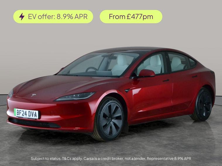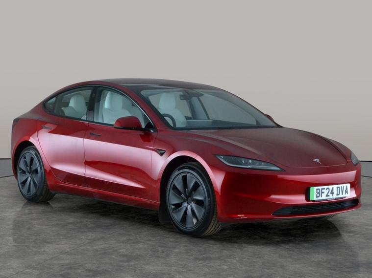 Experience the future of driving with this stunning red Tesla Model 3. Glide along in comfort with a panoramic roof, premium heated seats, and a heated steering wheel. Enjoy effortless journeys thanks to adaptive cruise control, active lane assist, and park assist. Stay seamlessly connected with built-in wifi and Sat Nav, and enter with ease via keyless entry. Safety is top-notch with blind spot assist, LED headlights, and a reversing camera. The ideal electric saloon for modern driving. 1 service recorded, last serviced on 14/03/2026 at 4, 546 miles. MOT to 16/05/2027. Visit our website for service history, online valuation, full vehicle specification plus multiple images. This vehicle is VAT qualifying. Any feature/option specified here is from 3rd party data. We cannot guarantee the accuracy of any specification supplied by a 3rd party. We recommend that you physically check the specification of the vehicle on site prior to purchase. This information does not form part of the buying contract. Terms & Conditions apply. We have over 2, 000 cars available from our 10 national branches, check our website to see all our stock. Our Trustpilot rating is 4.4/5 with over 9, 000 reviews.