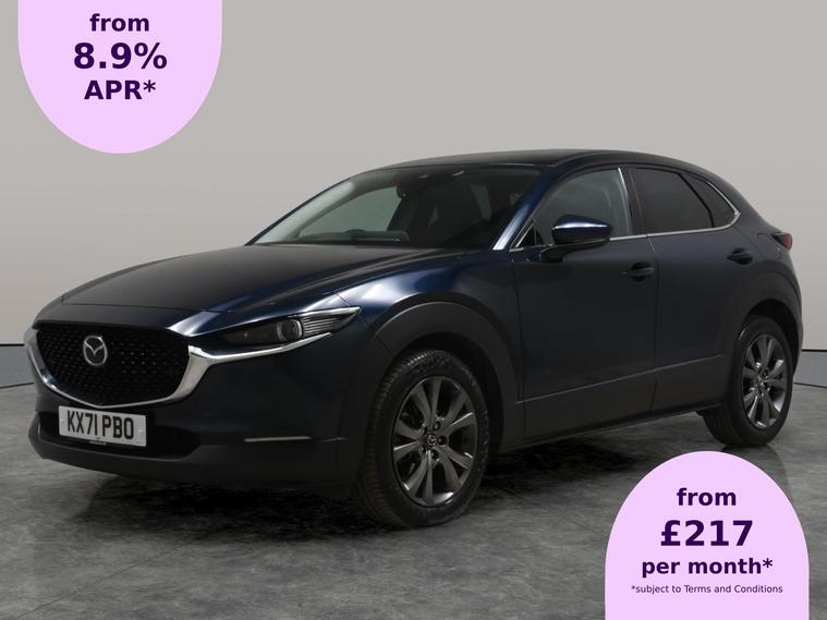 Step into the stylish world of the Mazda CX-30 Sport Lux! This beautiful blue SUV combines elegance with advanced tech features to elevate your driving experience. Enjoy the convenience of Keyless Entry and a Head-Up Display, making every journey seamless. Safety is a priority with Blind Spot Assist, Lane Departure Warning, and Adaptive Cruise Control. Experience bright and clear visibility with LED Headlights. Stay connected with Bluetooth and navigate with ease using the built-in Sat Nav. For added comfort, relish the warmth of Heated Seats on those chilly days. This Mazda CX-30 is ready to impress! MOT to 25/07/2026. Visit our website for service history, online valuation, full vehicle specification plus multiple images. Any feature/option specified here is from 3rd party data. We cannot guarantee the accuracy of any specification supplied by a 3rd party. We recommend that you physically check the specification of the vehicle on site prior to purchase. This information does not form part of the buying contract. Terms & Conditions apply. We have over 2, 000 cars available from our 10 national branches, check our website to see all our stock. Our Trustpilot rating is 4.4/5 with over 9, 000 reviews.