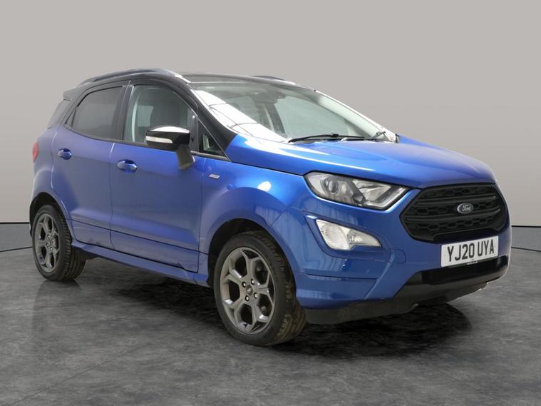 Discover the sporty Ford Ecosport ST-Line in striking blue, perfect for urban adventures and weekend getaways alike. Enjoy the luxury of half leather seats, digital climate control, and keyless start for effortless journeys. Stay connected with Ford SYNC3, satellite navigation, and Bluetooth audio streaming. Effortlessly manoeuvre with the reversing camera and keep safe with traffic sign recognition. The stylish 17in alloy wheels and LED daytime running lights complete this fun, practical SUV. Book your test drive today! 4 services recorded, last serviced on 11/01/2025 at 39, 898 miles. MOT to 21/12/2026. Visit our website for service history, online valuation, full vehicle specification plus multiple images. Any feature/option specified here is from 3rd party data. We cannot guarantee the accuracy of any specification supplied by a 3rd party. We recommend that you physically check the specification of the vehicle on site prior to purchase. This information does not form part of the buying contract. Terms & Conditions apply. We have over 2, 000 cars available from our 10 national branches, check our website to see all our stock. Our Trustpilot rating is 4.4/5 with over 9, 000 reviews.