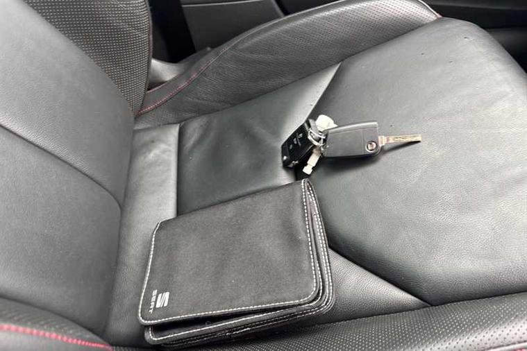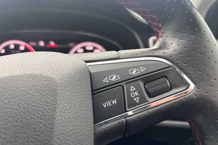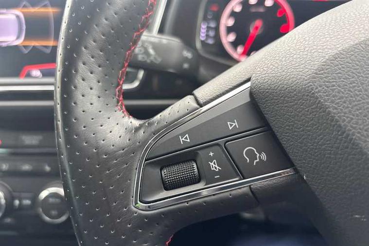 - Steering Wheel - Flat-Bottomed Perforated Leather with Red Stitching and FR Logo