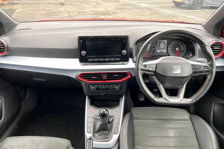 - Perforated Leather Flat-Bottomed Steering Wheel with Red Stitching and FR Logo with Leather Gear Kno