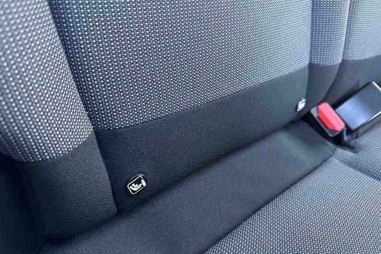 - ISOFIX Mountings on Outer Rear Seats with Top Tether and Labels Indicating Fixing Points