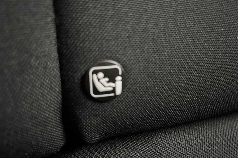 - ISOFIX Mountings on Outer Rear Seats with Top Tether and Labels Indicating Fixing Points