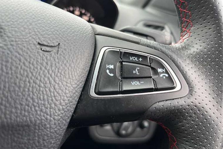 - Steering Wheel - 3-Spoke Flat Bottom - Leather Trimmed with Red Stitching