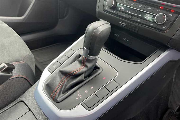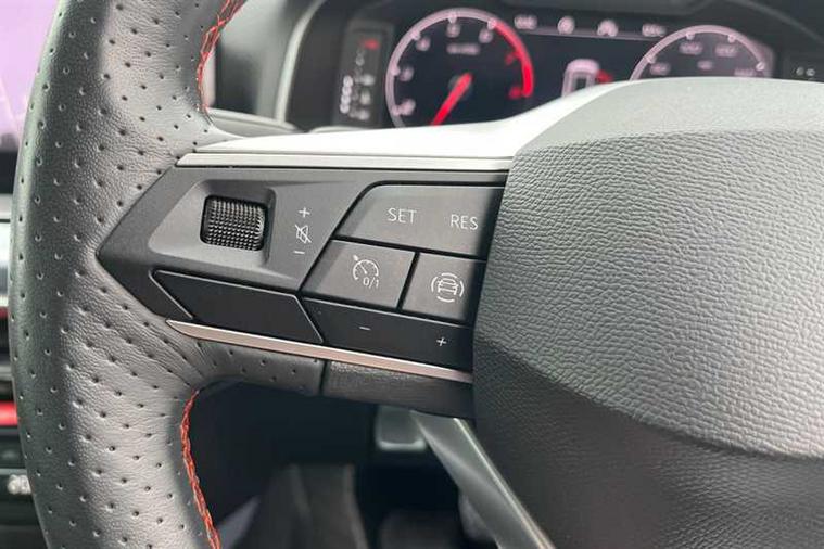 - Perforated Leather Flat-Bottomed Steering Wheel with Red Stitching and FR Logo with Leather Gear Kno
