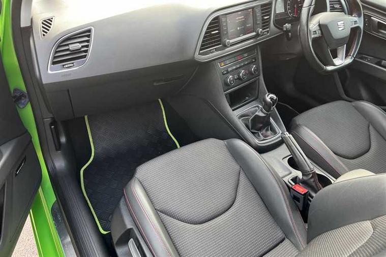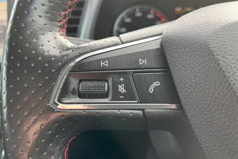 - Steering Wheel - Flat-Bottomed Perforated Leather with Red Stitching and FR Logo