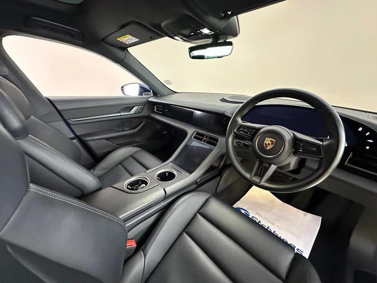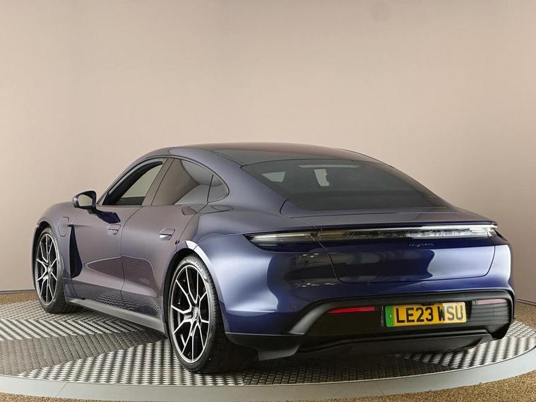 This 2023 Porsche Taycan Performance Plus is a superb example, having had only one owner since new. As an electric vehicle, it boasts a substantial 93 kWh battery, offering a maximum range of 314 miles when new. This Taycan is equipped with striking 21 inch RS Spyder Design Alloy Wheels and features a distinctive rear light strip with the PORSCHE logo in black. Inside, you'll find 18 way Adaptive Sports Seats for the front occupants, complete with a memory package, and both front and rear seats benefit from heating. The welcoming touch of Porsche Logo LED Door Courtesy Lights adds a premium feel.