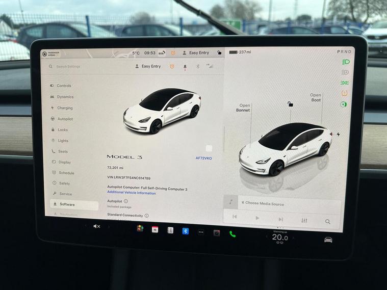 This 2022 Tesla Model 3 has had only one owner from new, offering a pristine example of this popular electric vehicle. As an electric car, it boasts a 62 kWh battery with a maximum range of 317 miles when new. Charging is convenient, taking approximately 8 hours for a full charge at home using a 7kW charger, while rapid public charging can take you from empty to 80% in just 29 minutes. This Model 3 also comes equipped with Adaptive Cruise Control, Keyless Go for effortless entry and starting, Air Conditioning, a Heated Steering Wheel for added comfort, and 2 Zone Climate Control to ensure everyone enjoys the perfect temperature.