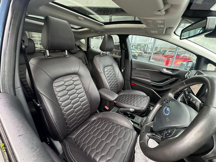 This 2019 Ford Fiesta Vignale T is an exceptional example, boasting remarkably low mileage for its age at just 22, 667 miles. As a T Vignale model, it offers a premium experience with its refined Vignale trim and a responsive 1.0 litre petrol engine. This Euro 6 compliant vehicle also features the convenient Ford KeyFree System for keyless entry, automatic on-off headlights with high beam assist, and an opening panorama roof for an airy cabin feel.