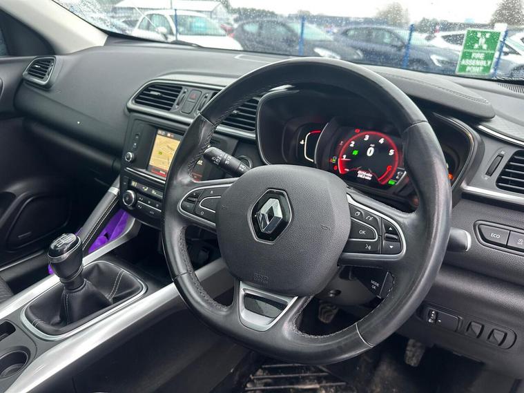 This 2018 Renault Kadjar TCe Signature Nav boasts exceptionally low mileage for its age, having covered just 45, 151 miles. This well appointed Kadjar features a responsive 1.3 litre petrol engine and meets Euro 6 emissions standards. Inside, you'll find a fixed panoramic sunroof that floods the cabin with light, and a BOSE sound system for an enhanced audio experience. Convenience is key with the hands free keycard, offering keyless entry and walk away lock functionality, while the automatic dual zone climate control ensures comfort for all occupants.