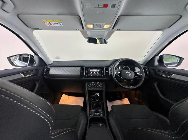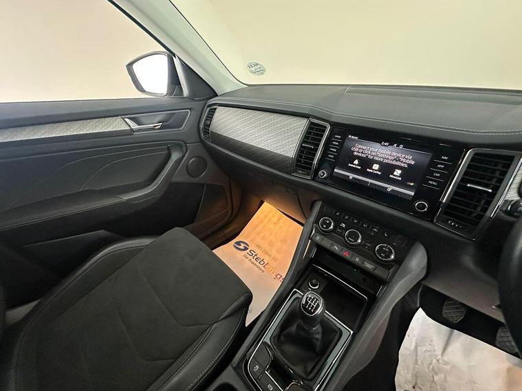 This 2022 Skoda Kodiaq TSI SE L is a truly exceptional find, boasting a single owner and an incredibly low mileage of just 18, 592 miles. This seven seat SUV is powered by an efficient 1.5 litre petrol engine and meets Euro 6 emissions standards. It comes equipped with advanced Full LED Matrix Headlights featuring an Adaptive Front Light System with Cornering Function and All Weather Lighting, ensuring optimal visibility in all conditions. Convenience is further enhanced by wireless charging, front and rear parking sensors for effortless manoeuvring, and the SmartLink system which seamlessly integrates your Android Auto or Apple CarPlay. The KESSY keyless entry and start system adds a touch of modern ease to your driving experience.